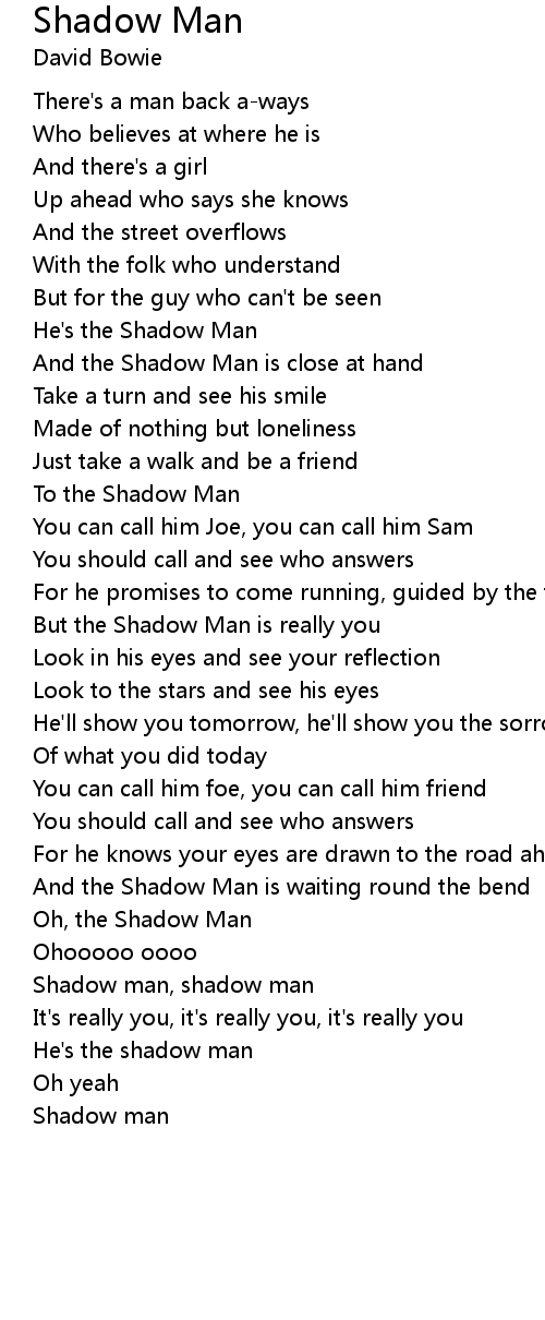 Shadow man, shadow man |