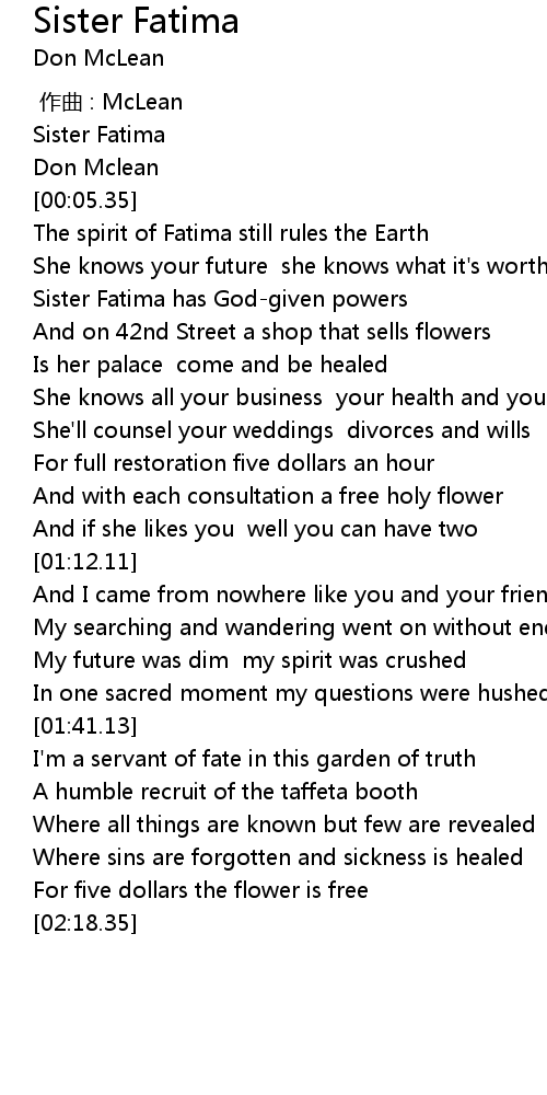 | [00:01.76] | Sister Fatima |