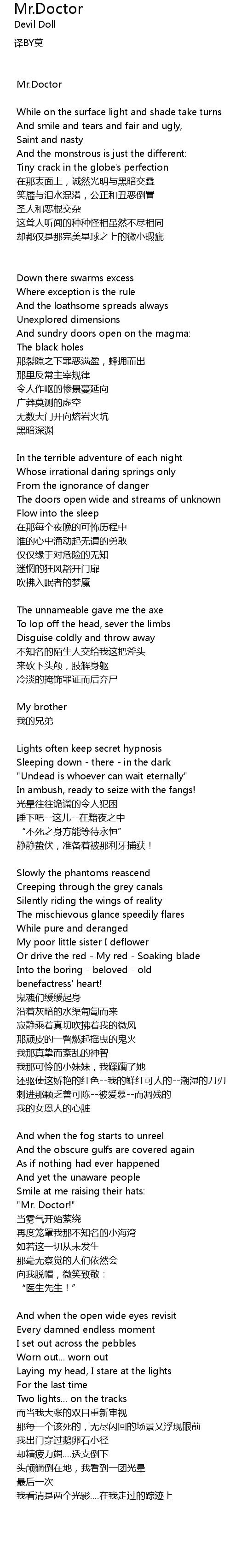 | 歌曲 | Mr.Doctor |