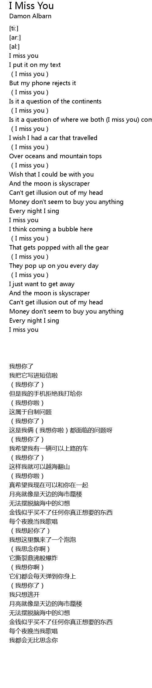 | [00:18.39] | I miss you |