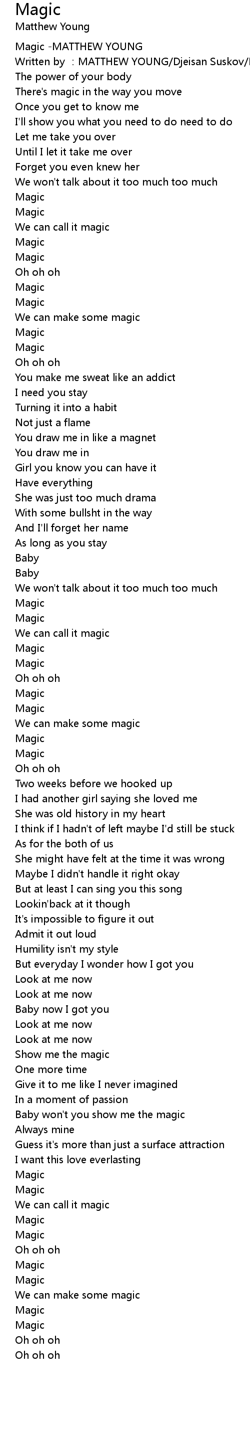 | [00:00.450] | Magic -MATTHEW YOUNG |