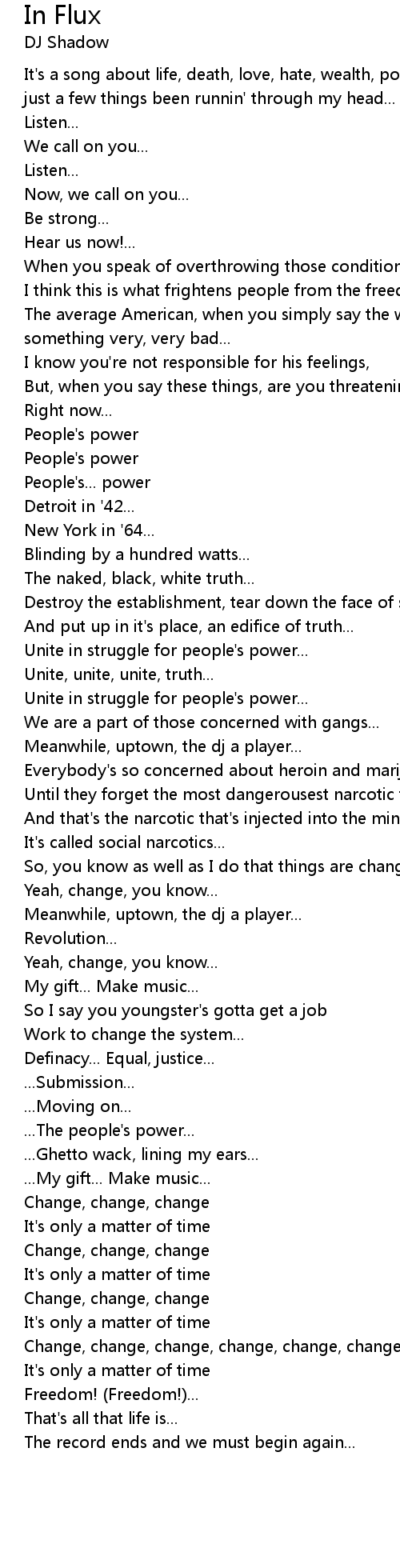 It's a song about life, death, love, hate, wealth, poverty, racism... |
