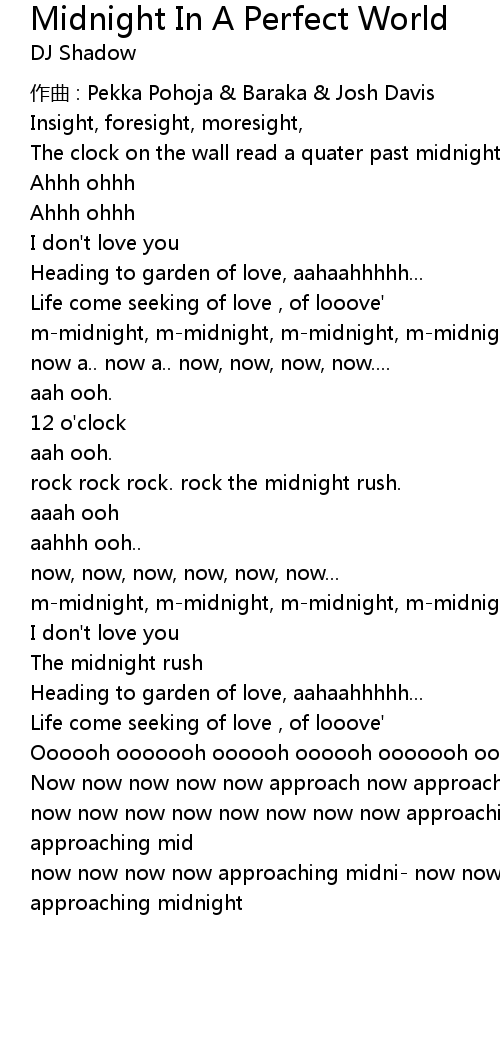 | 歌曲 | Midnight In A Perfect World |