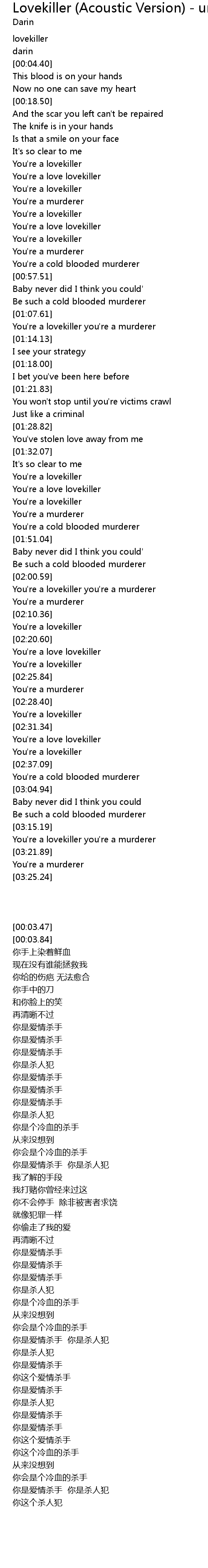 You're a lovekiller you're a murderer |