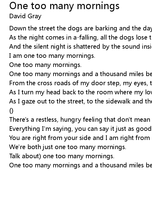 Talk about) one too many mornings. |