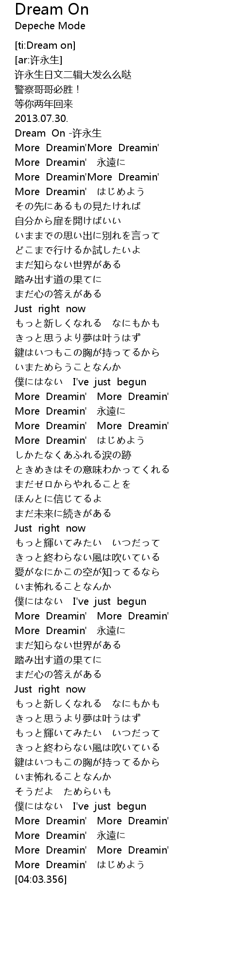 | [00:02.90] | Dream On xǔ yǒng shēng |