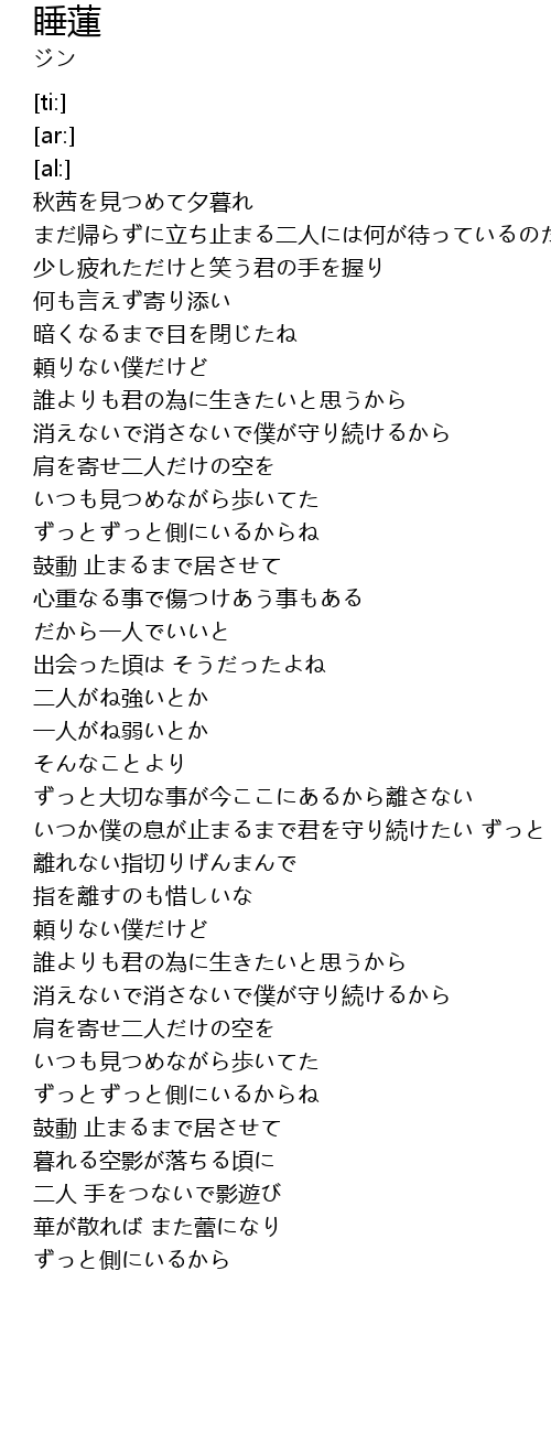 | [02:46.12] | いつか僕の息が止まるまで君を守り続けたい ずっと |