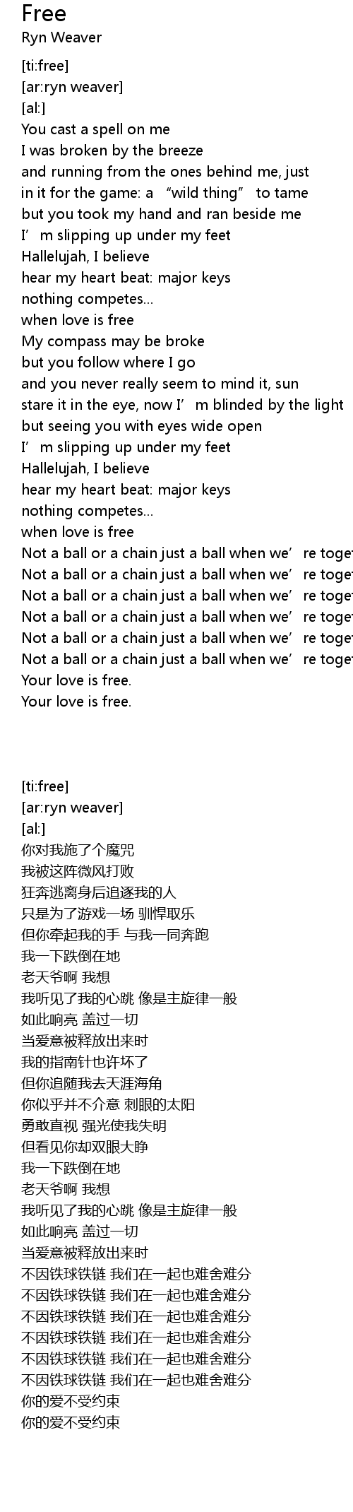 | [02:02.04] | Not a ball or a chain just a ball when we’re together |