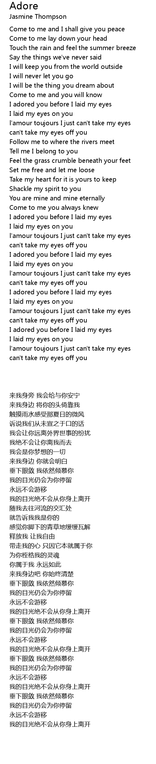 l'amour toujours I just can't take my eyes |