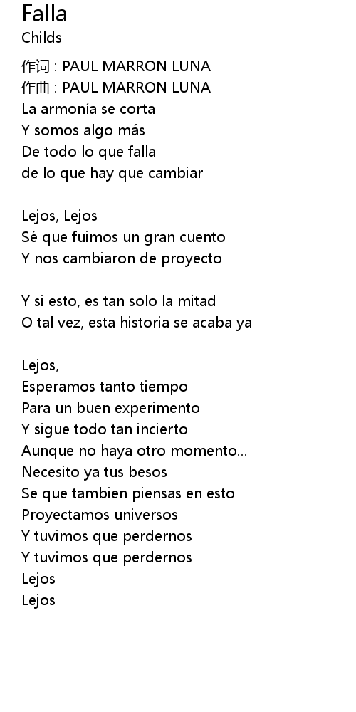 | 作词 : PAUL MARRON LUNA | |