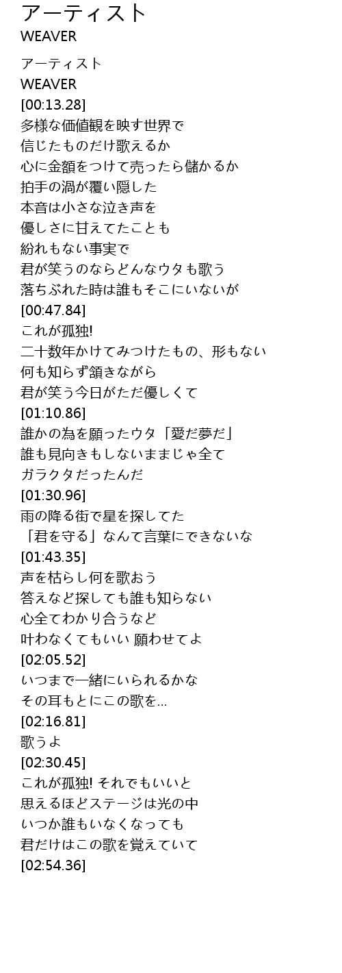 | [00:36.04] | 君が笑うのならどんなウタも歌う |