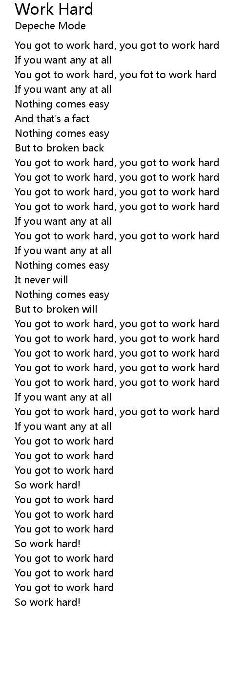 You got to work hard, you fot to work hard |