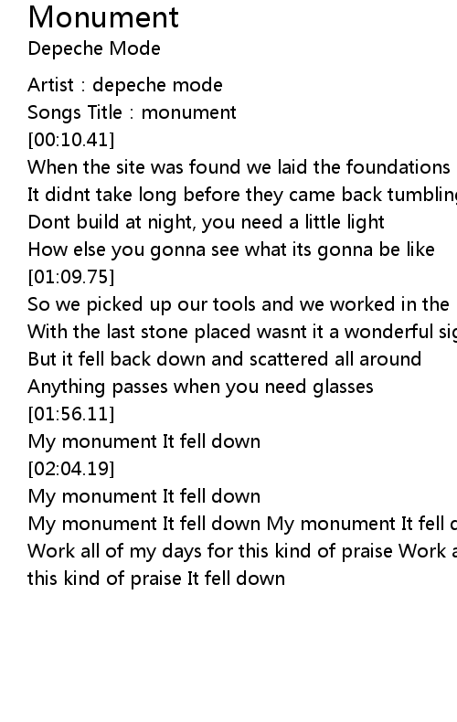 | [02:10.49] | My monument It fell down My monument It fell down |