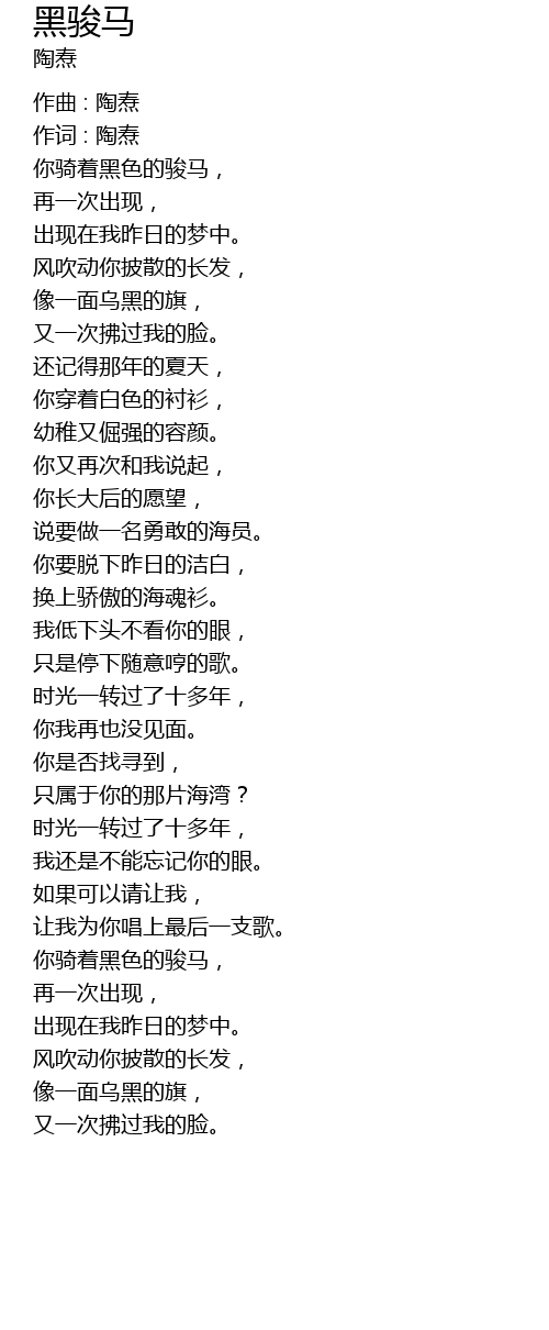 | nǐ qí zhe hēi sè de jùn mǎ, | |