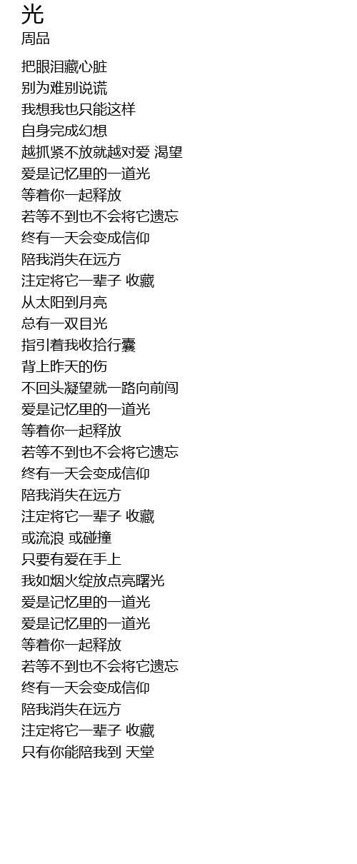 | [03:24.960] | 只有你能陪我到 天堂 |