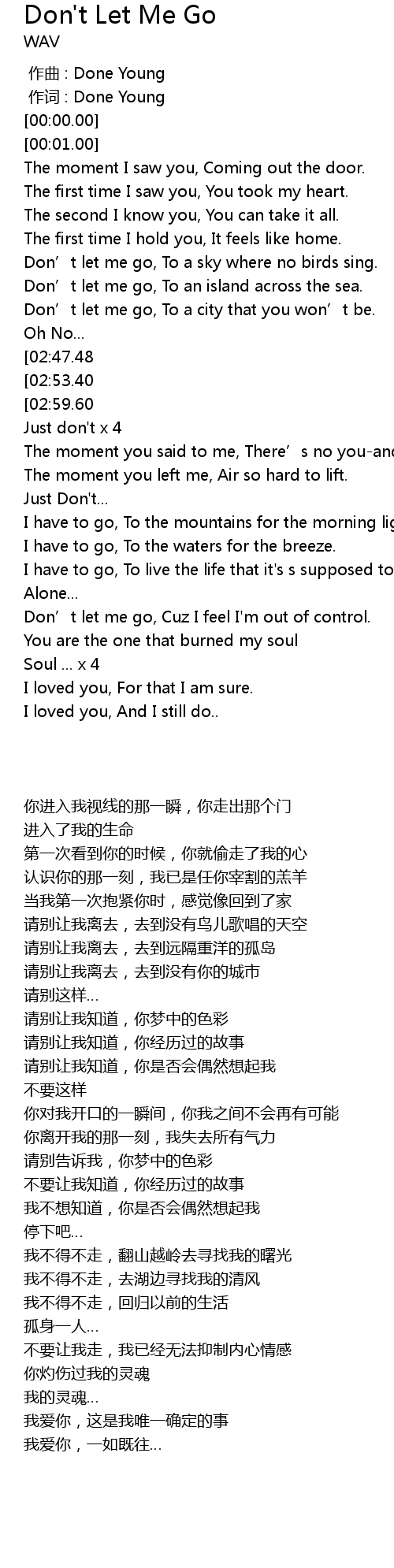 | [03:36.35] | 不要让我走,我已经无法抑制内心情感 |
