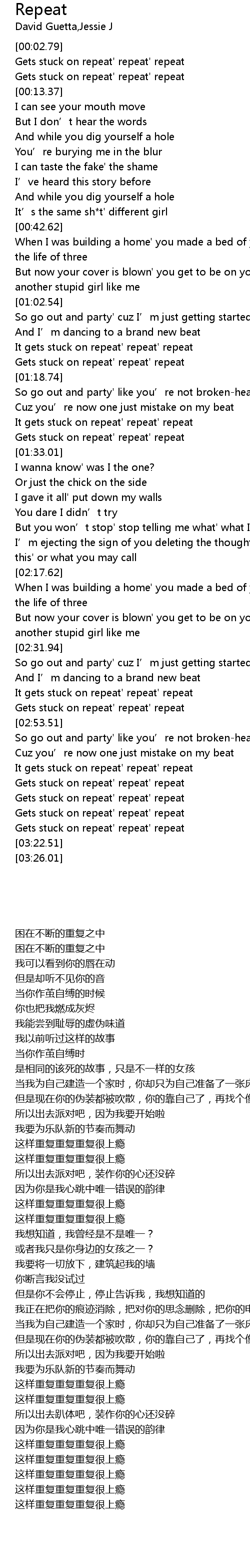 | [02:49.68] | Gets stuck on repeat' repeat' repeat |