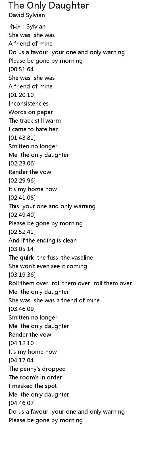 | [04:42.79] | Me the only daughter |