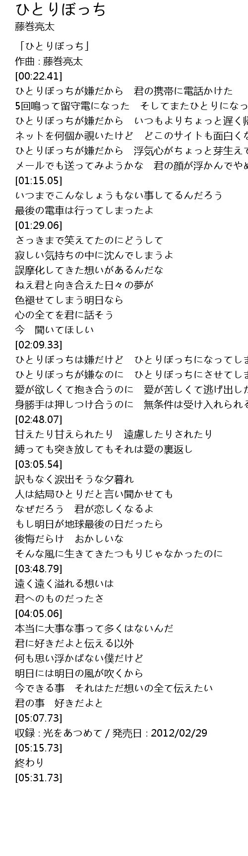 | [00:01.41] | 「ひとりぼっち」 |