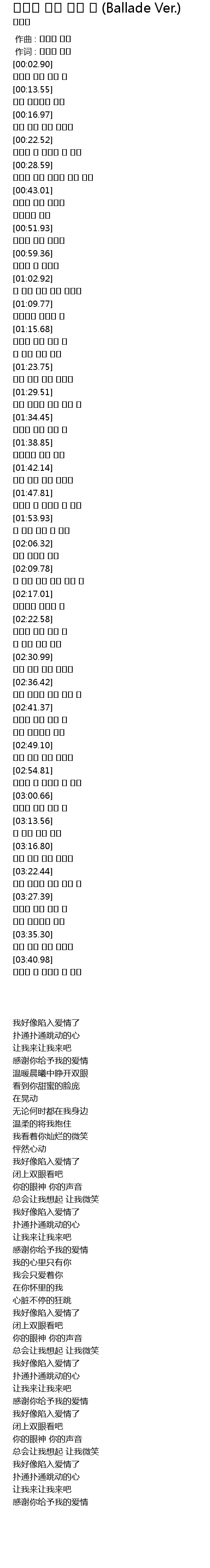 | 歌曲 | 사랑에 빠진 건가 봐 (Ballade Ver.) |