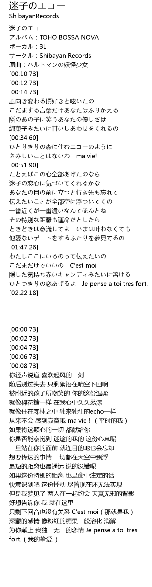 | [00:08.73] | 原曲:ハルトマンの妖怪少女 |