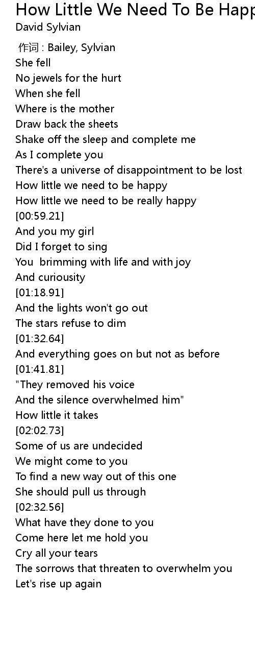 | [00:46.95] | How little we need to be happy |