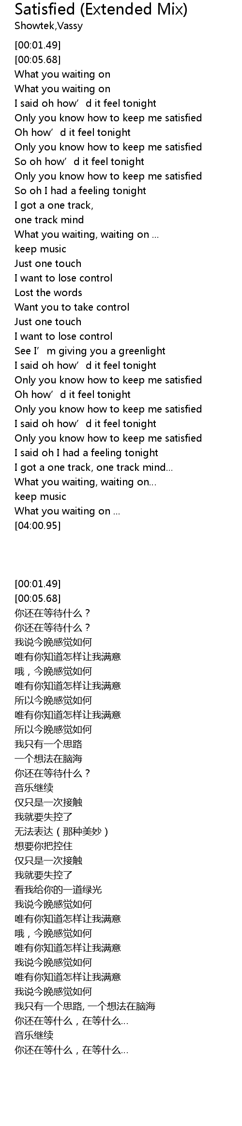 | [02:39.83] | 唯有你知道怎样让我满意 |
