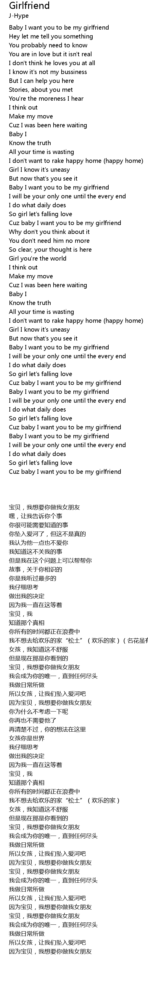 Cuz baby I want you to be my girlfriend |