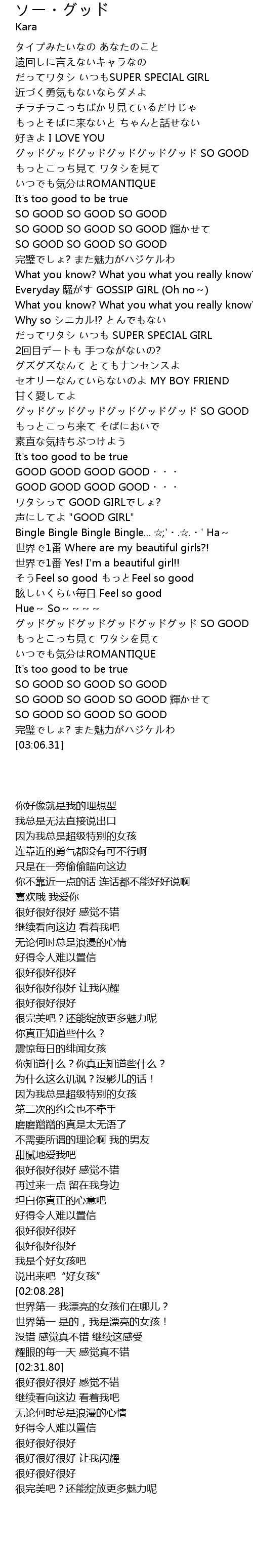 | [02:55.99] | SO GOOD SO GOOD SO GOOD |