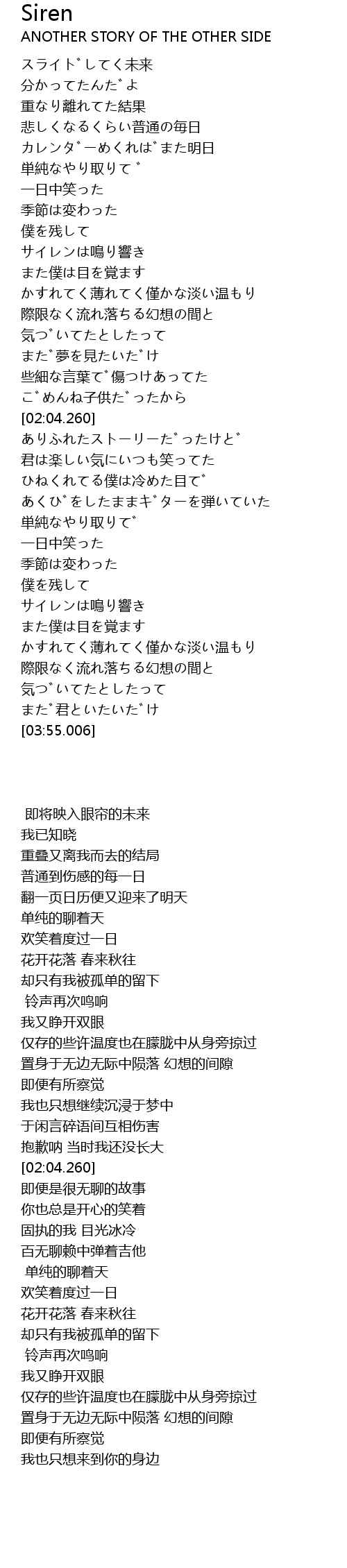 | [03:22.638] | サイレンは鳴り響き |