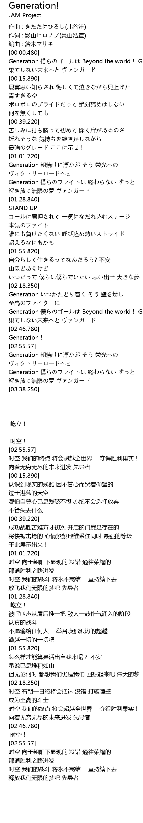 | [02:30.000] | Generation pu Beyond the world! Get the win! |