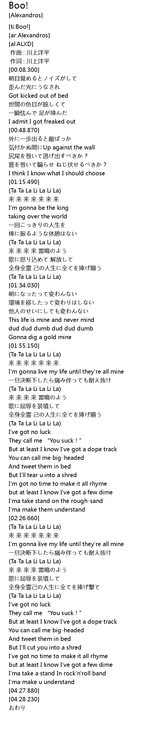 | [04:01.100] | (Ta Ta La Li La Li La) |