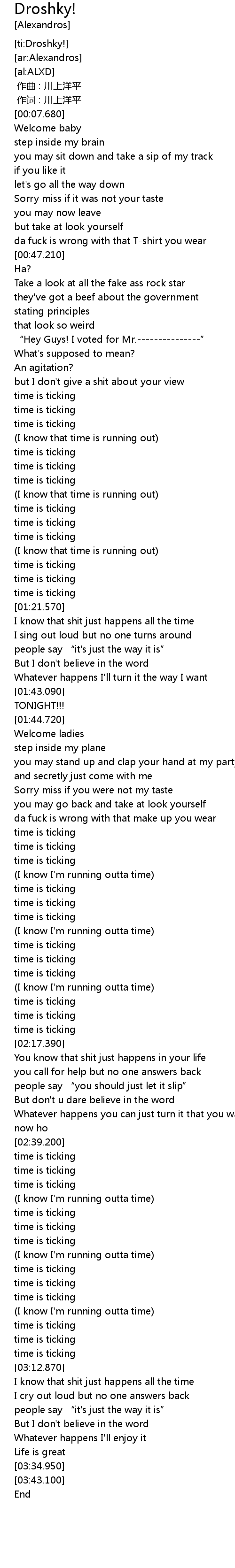 | [00:58.580] | Take a look at all the fake ass rock star |