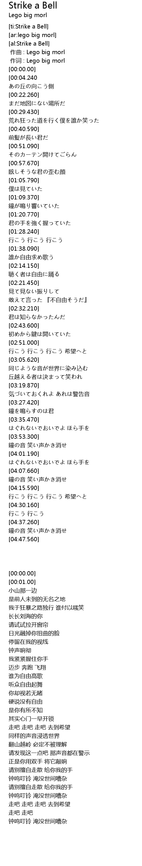 | [04:38.130] | 鐘の音 笑い声かき消せ |