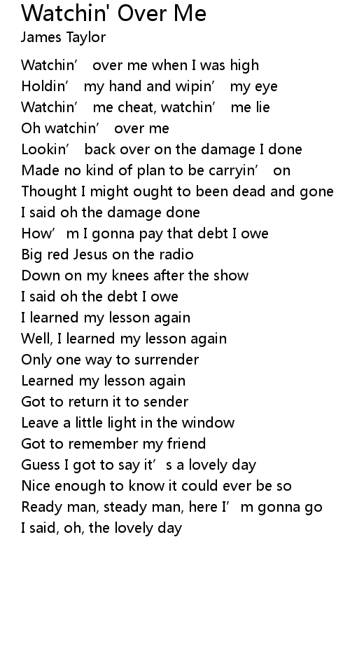 | Oh watchin’ over me | |