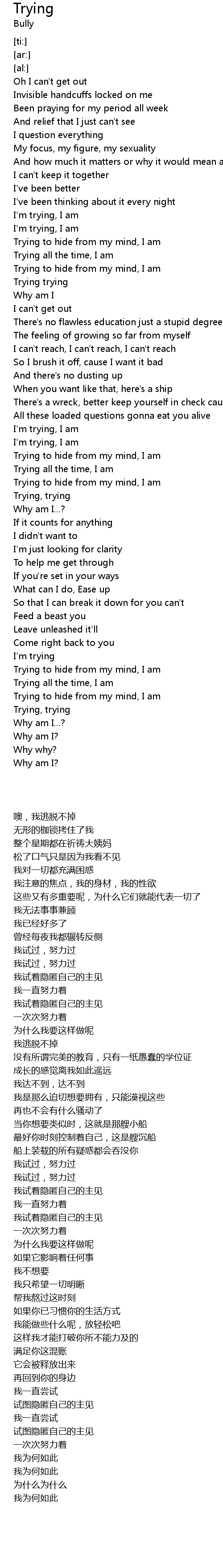 Trying all the time, I am |
