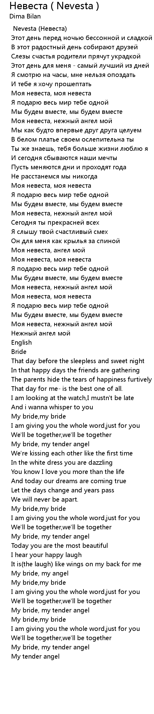 | 歌曲 | Невеста ( Nevesta ) |