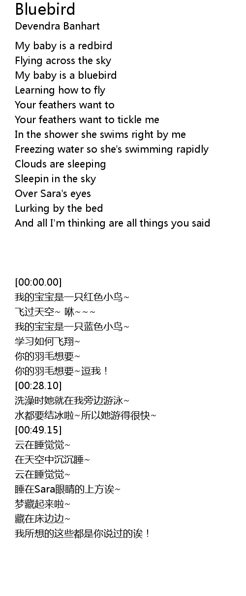 | [00:11.50] | 我的宝宝是一只蓝色小鸟~ |