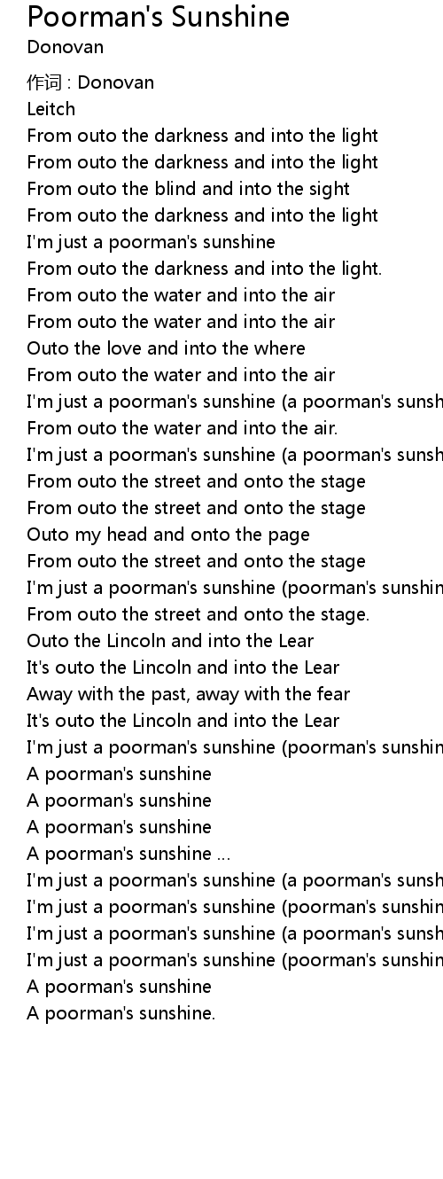 | I'm just a poorman's sunshine (poorman's sunshine) | |