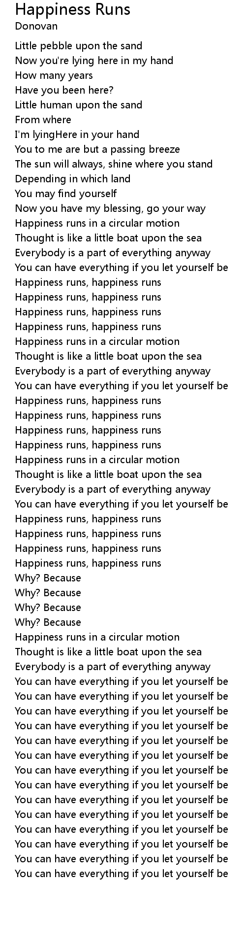 Happiness runs, happiness runs |