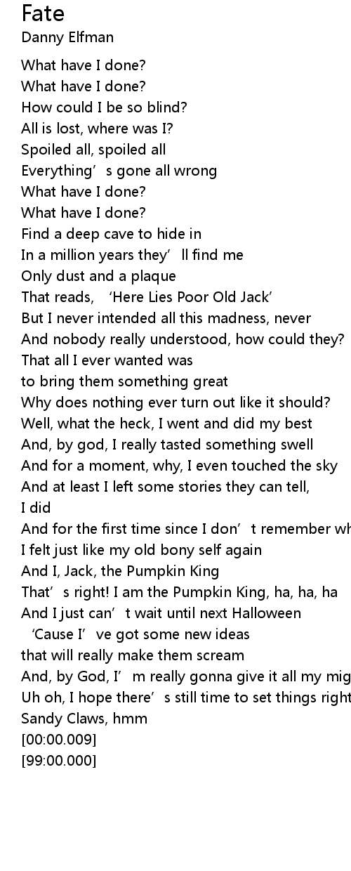 | [02:00.49] | That' s right! I am the Pumpkin King, ha, ha, ha |
