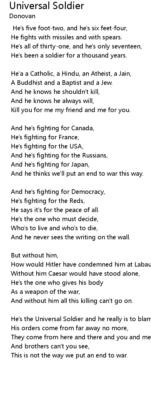 He's the Universal Soldier and he really is to blame, |