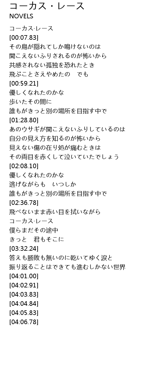 | [02:23.18] | 誰もがきっと別の場所を目指す中で |