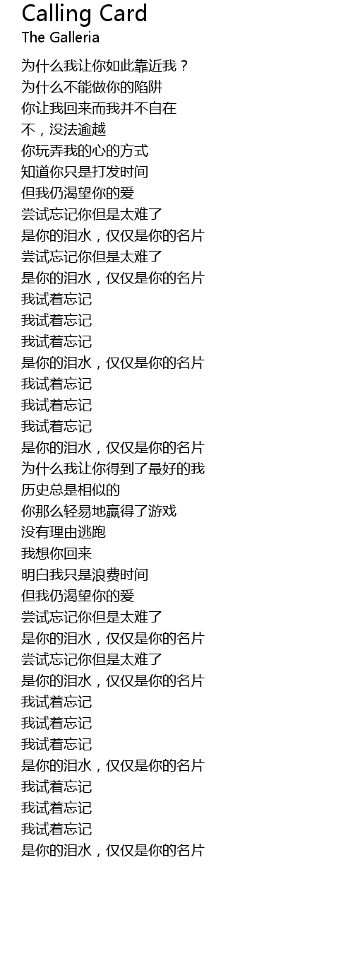 | [01:24.60] | 是你的泪水,仅仅是你的名片 |
