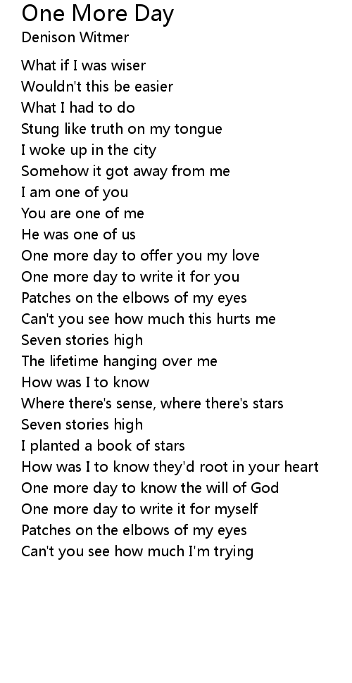 One more day to offer you my love |