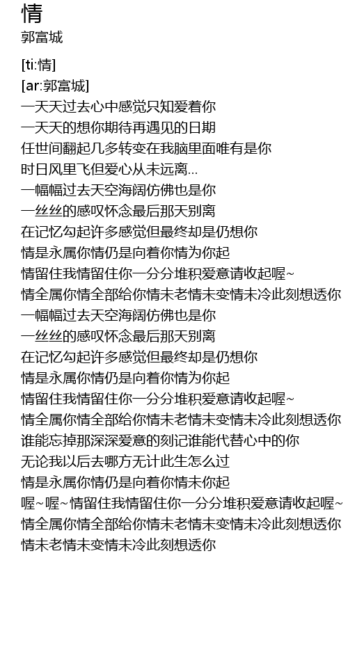 | [04:01.15] | 情全属你情全部给你情未老情未变情未冷此刻想透你 |