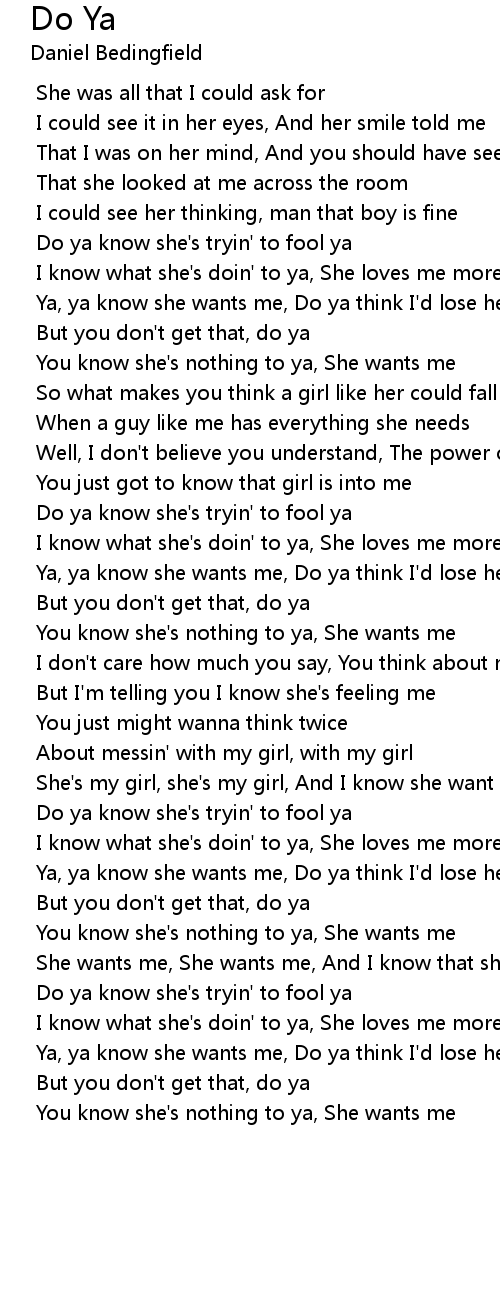 Ya, ya know she wants me, Do ya think I'd lose her to ya |