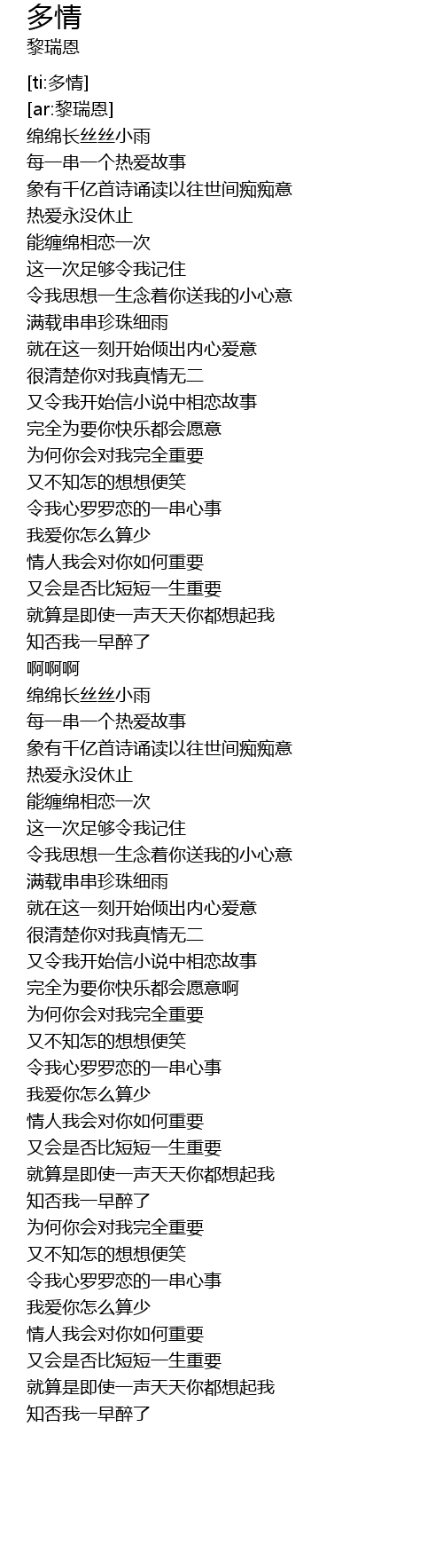 | [00:18.190] | mián mián cháng sī sī xiǎo yǔ |
