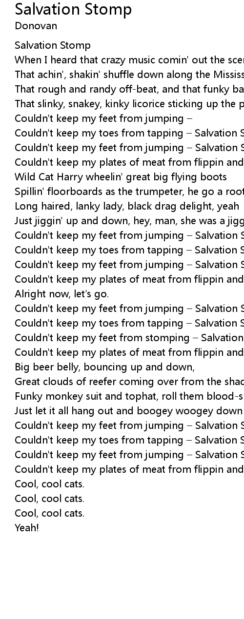 | Couldn't keep my feet from jumping – Salvation Stomp | |