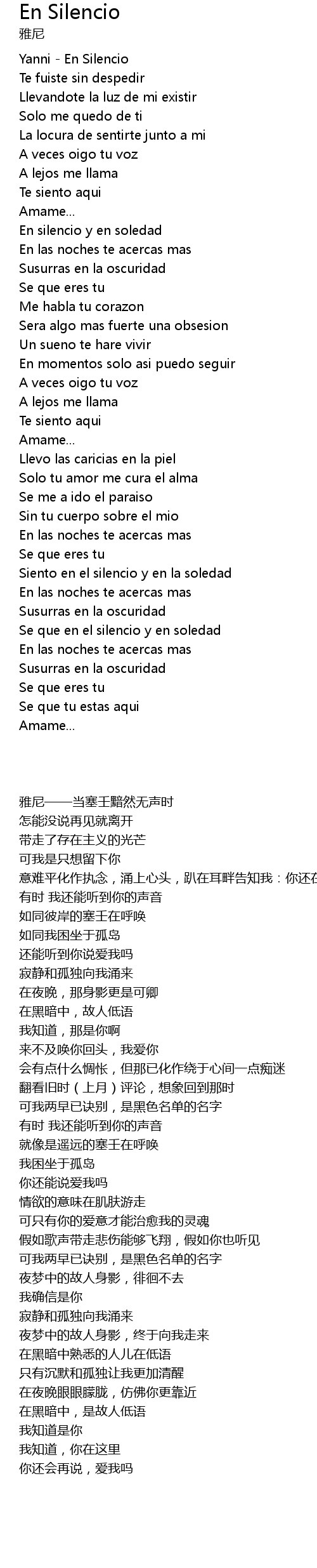 Yanni - En Silencio |